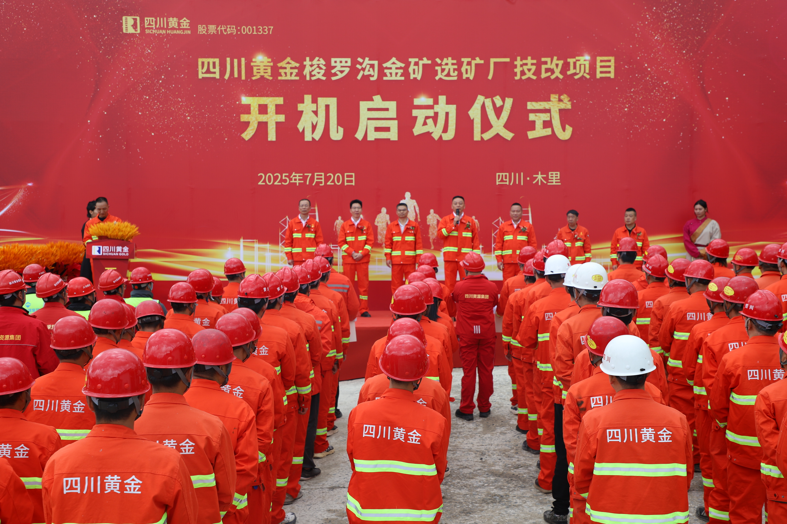 四川黃金總經(jīng)理吳安東出席儀式,并宣布選礦廠技改項(xiàng)目正式投產(chǎn)。四川黃金集團(tuán)副隊(duì)長(zhǎng)程學(xué)權(quán),四川黃金股份有限公司監(jiān)事會(huì)主席汪小輝、副總經(jīng)理劉立輝出席并致辭。