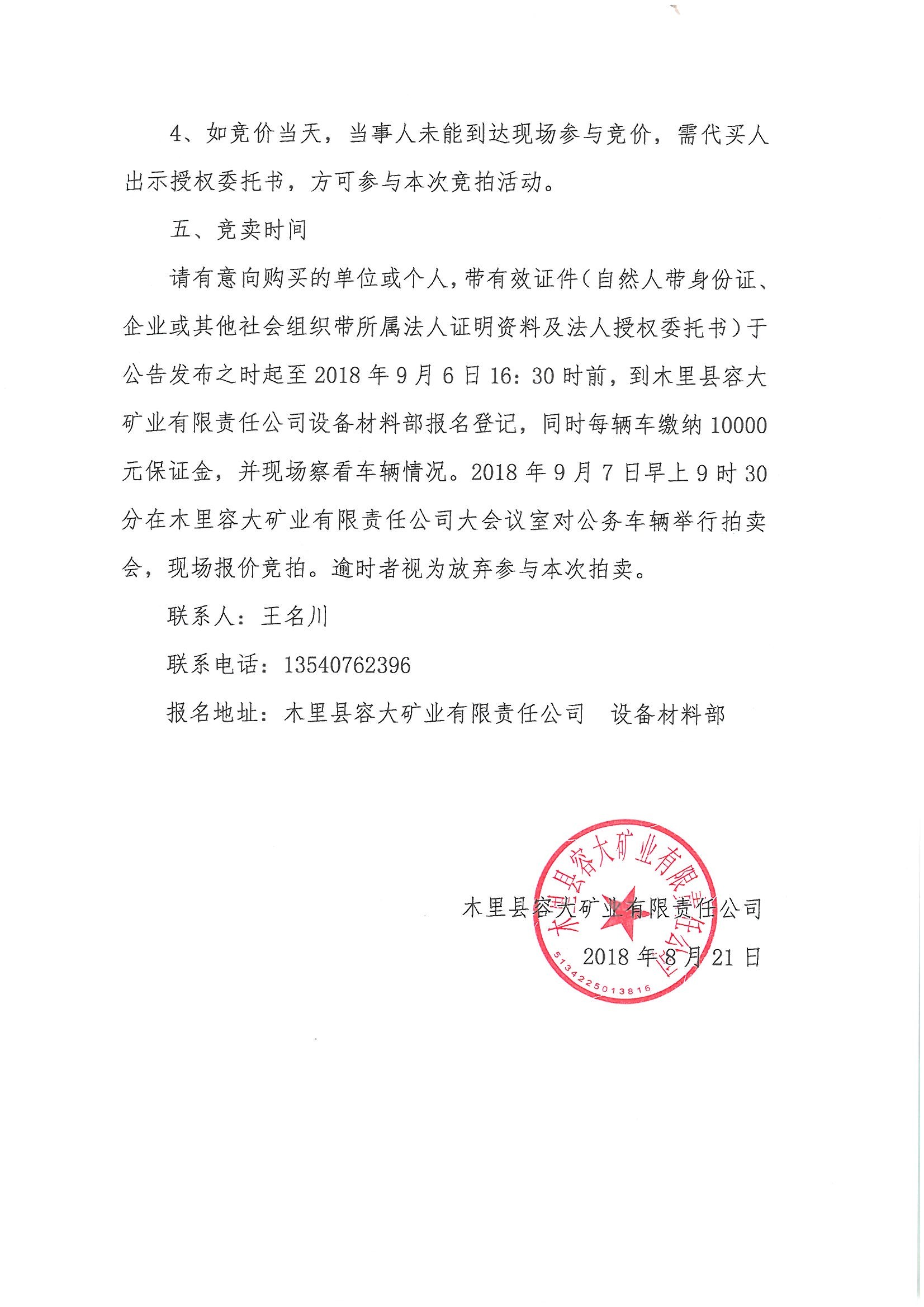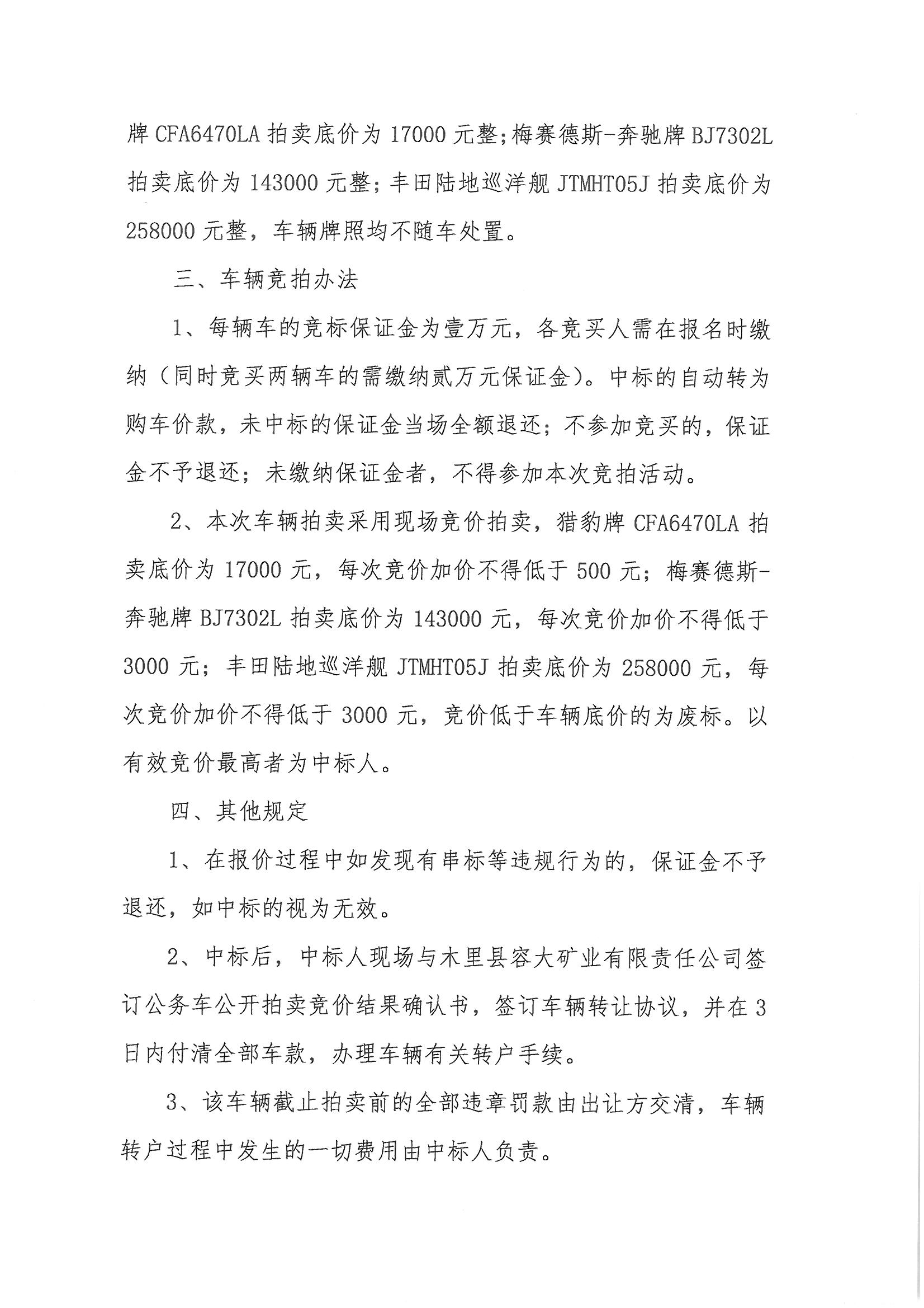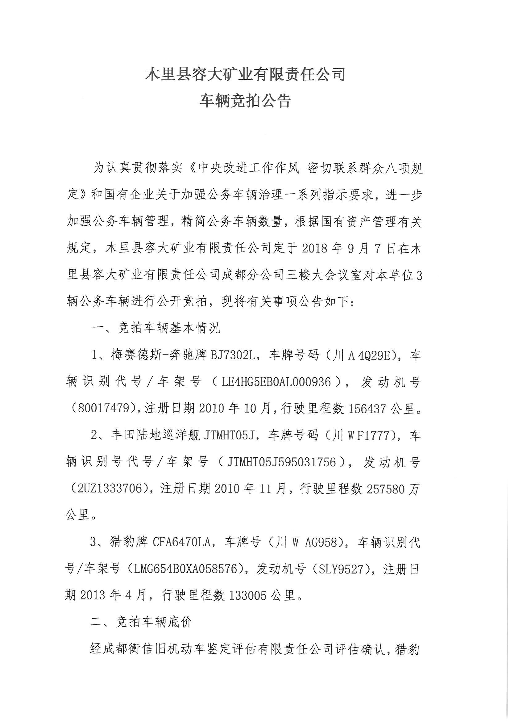 木里縣容大礦業(yè)有限責(zé)任公司車輛競拍公告