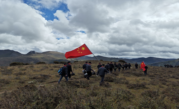 本次徒步登山競(jìng)賽活動(dòng)地點(diǎn)選擇在礦區(qū)以西灰?guī)r山,終點(diǎn)海拔近4500米。在這山高、路陡、叢林險(xiǎn)峻的攀爬過(guò)程中,大家相互攙扶、相互幫助、相互鼓勵(lì),充分發(fā)揚(yáng)了“容大人”團(tuán)結(jié)拼搏、不畏艱險(xiǎn)的優(yōu)良作風(fēng)。競(jìng)賽經(jīng)過(guò)一個(gè)多小時(shí)激烈的角逐,山頂裁判傳來(lái)捷報(bào):綜合辦員工伍馬馬率先登上終點(diǎn),選礦廠女員工姜霞“巾幗不讓須眉”緊隨其后登頂成功,各隊(duì)隊(duì)員也陸續(xù)抵達(dá)終點(diǎn)。最先到達(dá)終點(diǎn)的前三名分獲一二三等獎(jiǎng),大家一致推薦把“最佳精神獎(jiǎng)”頒給55歲的彭玉洪。每位同事經(jīng)歷這一場(chǎng)高原競(jìng)賽,雖然氣喘吁吁、精疲力竭,但都充滿了到達(dá)終點(diǎn)、成功挑戰(zhàn)自我的喜悅。大家聚坐在山頂,共贊祖國(guó)河山,共頌祖國(guó)母親。