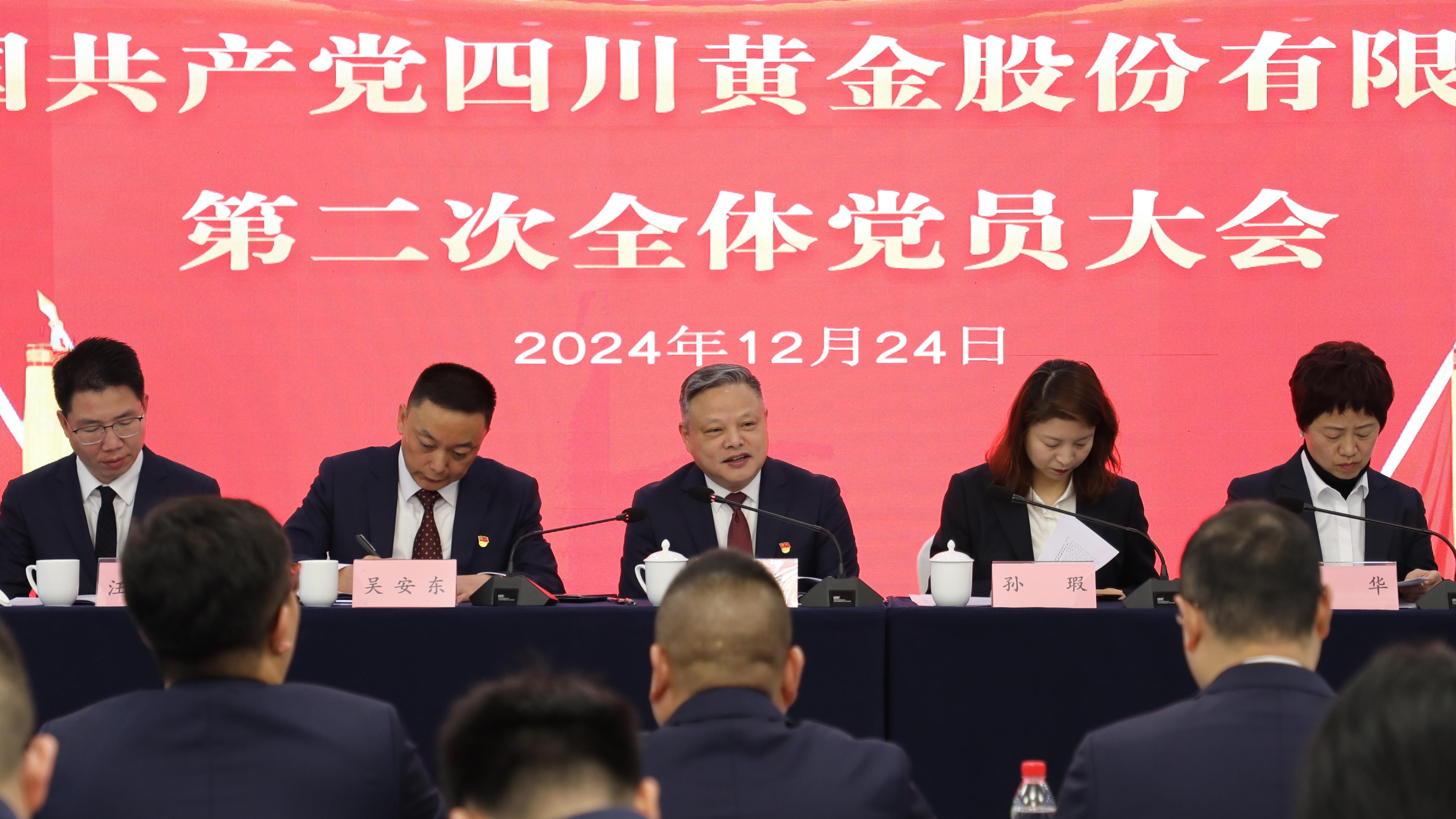 2024年12月24日,中國共產(chǎn)黨四川黃金股份有限公司第二次全體黨員大會在成都召開。會議由公司黨委副書記、副董事長、總經(jīng)理吳安東主持,區(qū)調(diào)隊黨委副書記孫瑕,紀(jì)委書記、工會主席楊華到會指導(dǎo)。